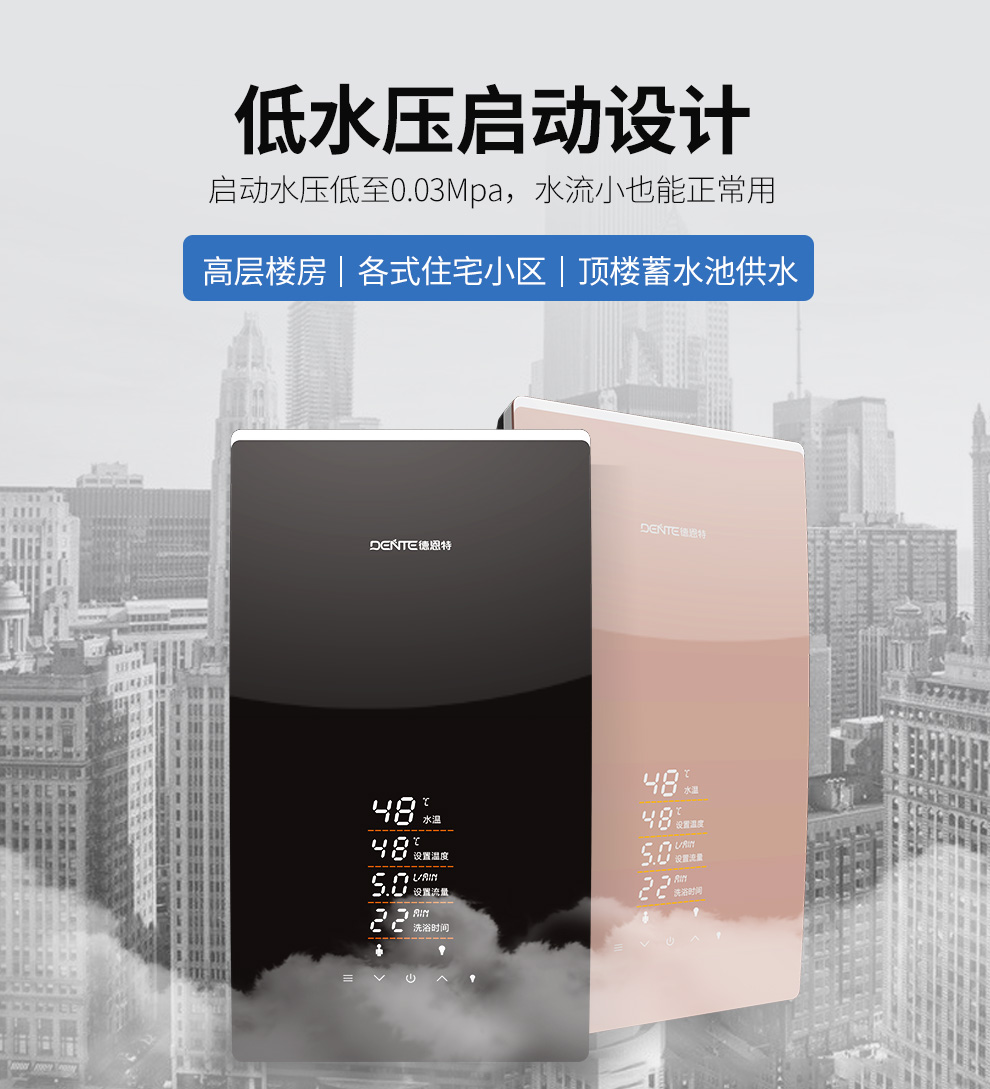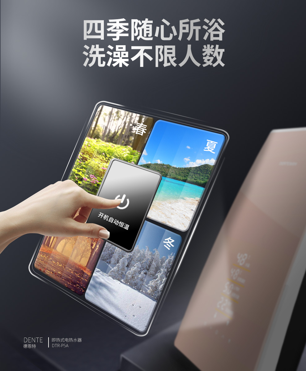 產品中心 > 即熱電熱水器系列> 德恩特DTR-P5A全隱藏安裝速熱大水量 玫瑰金/典雅黑V12系列